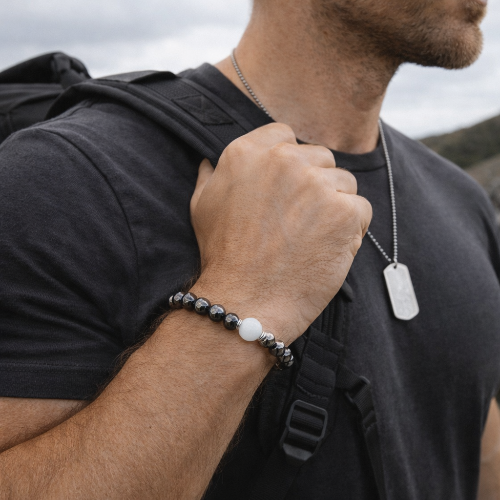 - This men's bracelet includes genuine stones and metal components in our jewelry, to keep looking like new avoid water & remove when applying lotion/perfume