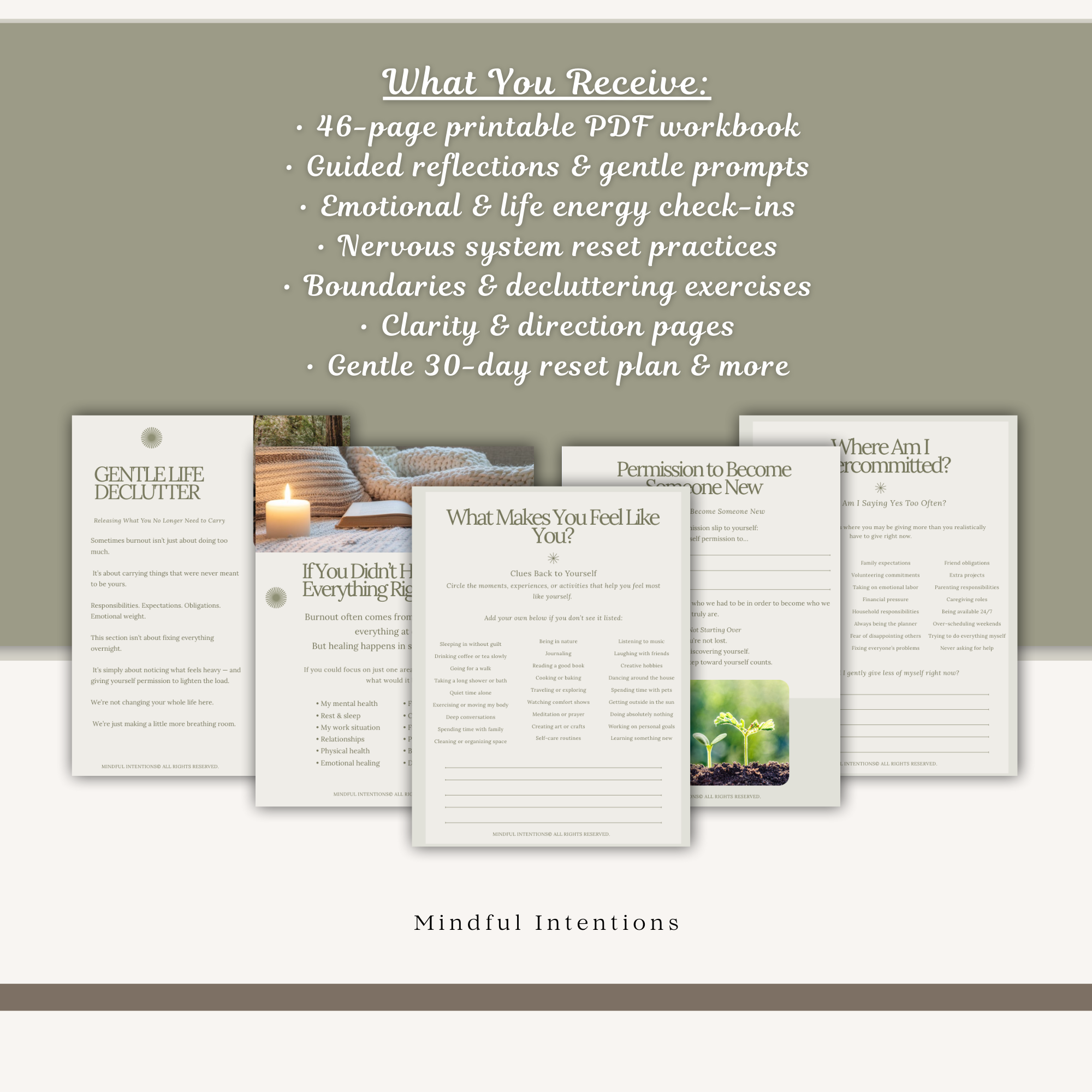 This printable workbook was created as a safe space to slow down, reconnect, and gently find clarity again — without pressure, productivity guilt, or needing to fix everything at once.